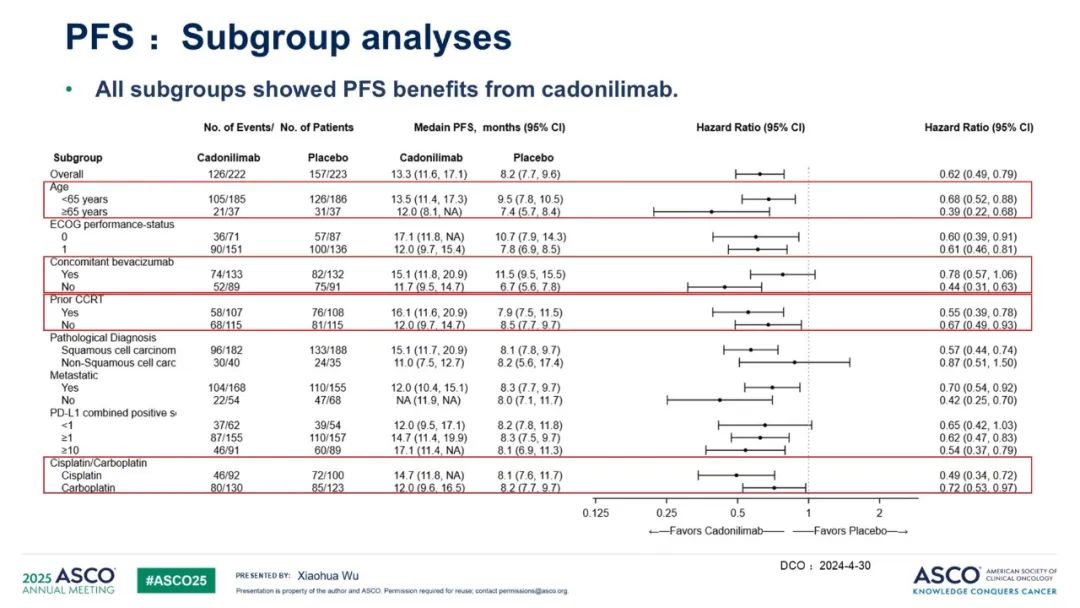 亚组分析是否发现可指导卡度尼利单抗用药的生物标志物或临床特征?