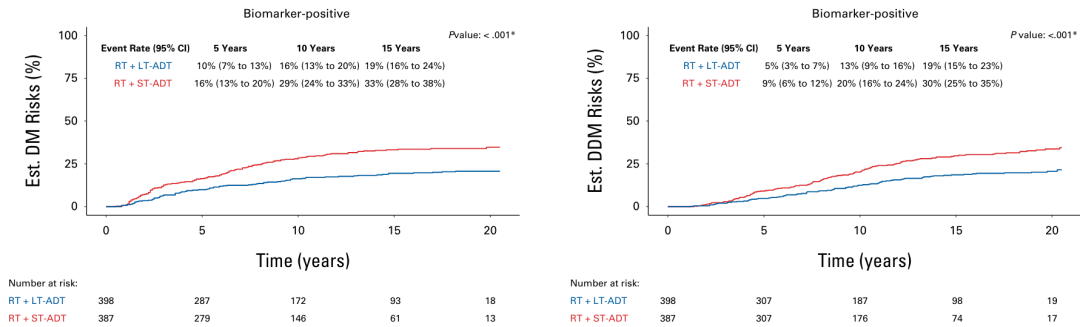 • MMAI生物标志物阳性患者中,长期ADT治疗与短期ADT治疗的15年风险差异为14%,而生物标志物阴性患者中则为0%。