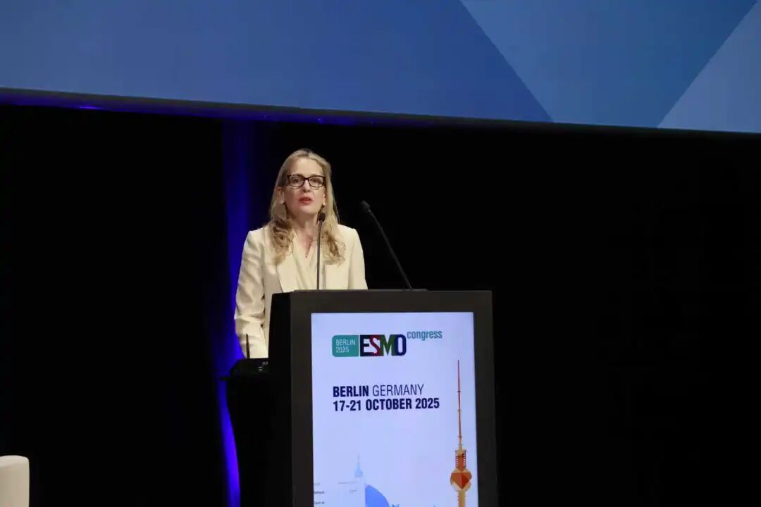 编者按:2025年10月17日至21日,欧洲肿瘤内科学会年会(ESMO)在德国柏林盛大召开。当地时间10月19日上午,新加坡国立癌症中心的Rebecca A.Dent教授在“Proffered paper session 2:Breast cancer,metastatic”专场汇报了题为“Ⅲ期TROPION-Breast02研究主要结果:对于无法接受免疫治疗的局部复发无法手术或转移性三阴性乳腺癌(mTNBC)患者,采用一线(1L)治疗药物Dato-DXd与化疗疗效对比”的现场报告(摘要号:LBA21),研究结果显示,TROPION-Breast02研究达到PFS和OS双重主要终点,Dato-DXd治疗患者中位PFS达10.8个月,中位OS接近2年(23.7个月),其令人惊艳的数据,赢得了现场观众的阵阵掌声,本文就该研究数据进行报道。