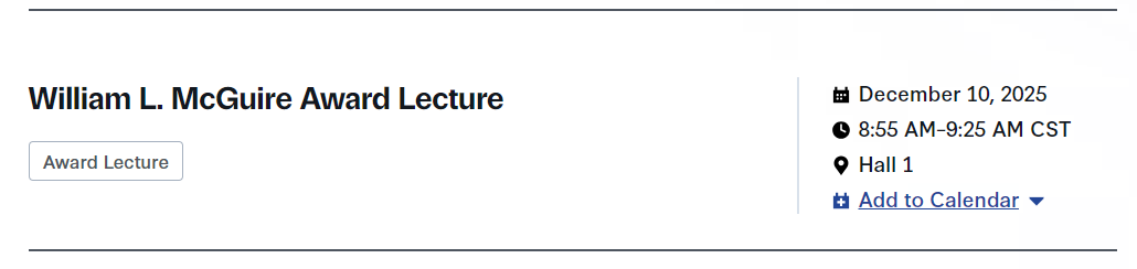 一场颁奖讲座:William L.McGuire Award Lecture纪念讲座奖