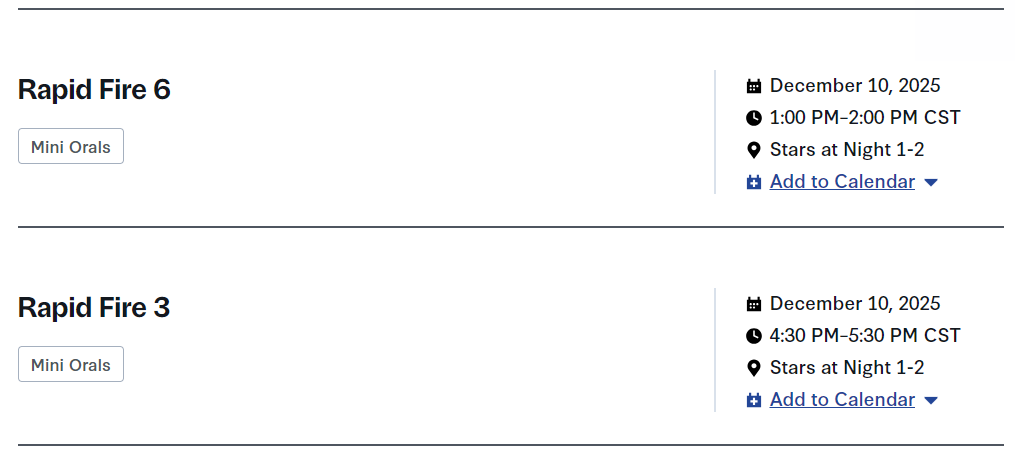 两场Mini口头报告:1、Rapid Fire 6;2、Rapid Fire 3。
