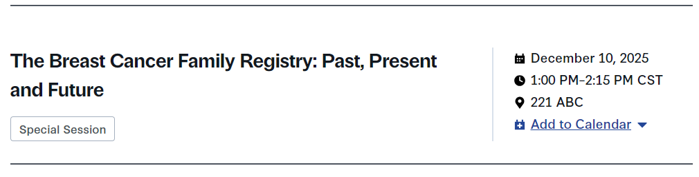 一场特殊专场:乳腺癌家庭登记:过去、现在和未来
