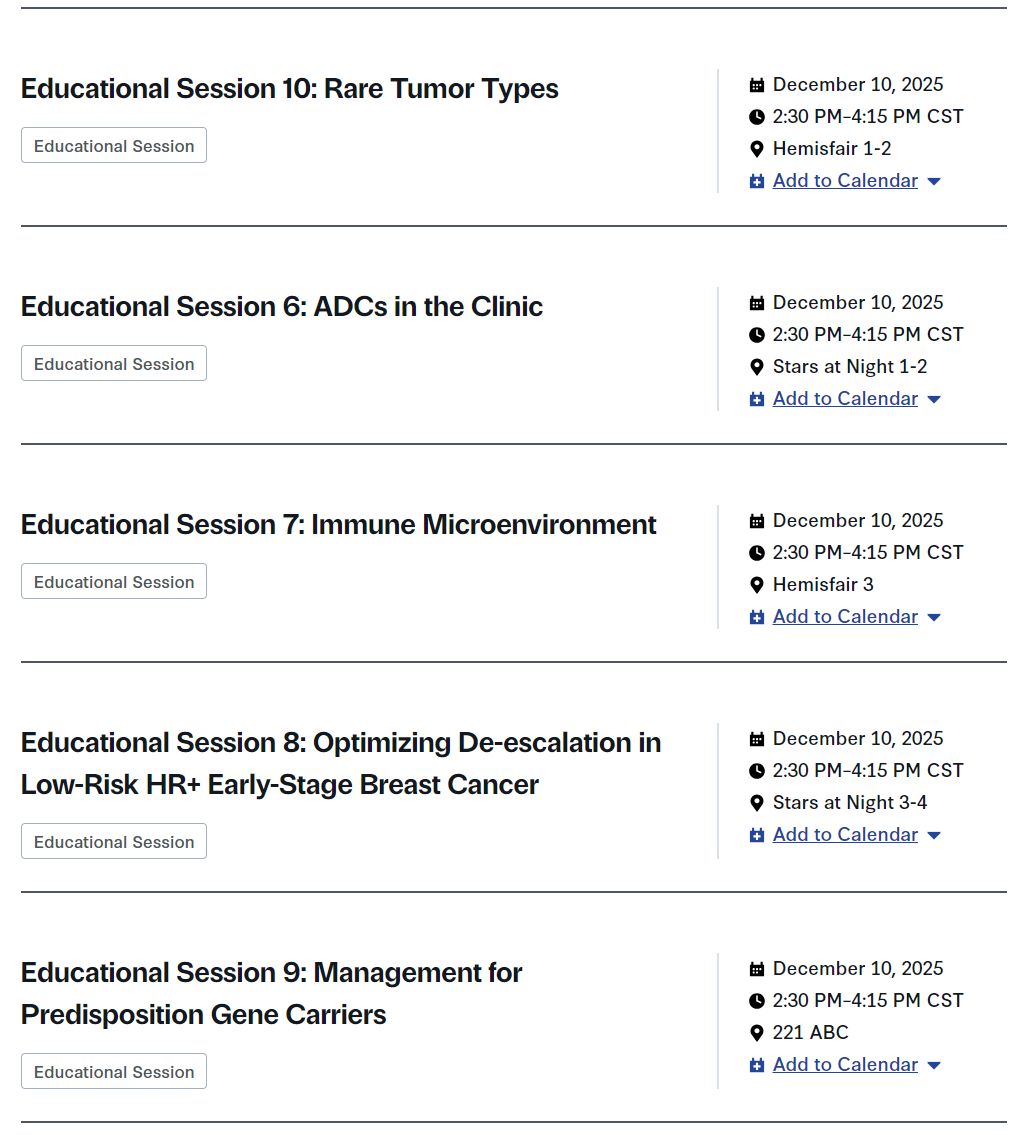 瞭望前瞻丨SABCS 2025会议第二天(12月10日)重要内容速览