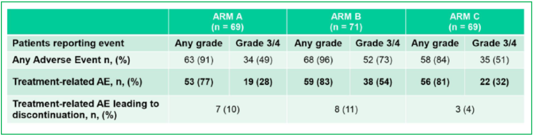 1、双靶先上场似乎更好?本次会议公布的仍是早期结果,从CR率和2年PFS率来看,似乎C组有胜出趋势;但A组的PFS最长,有效率也最高;B组虽爆发力不足,但属于耐力型选手,在2年PFS率上,追平其他两组。但不管如何,A和C组存在更多的优势,而这两组均是双靶先上场。