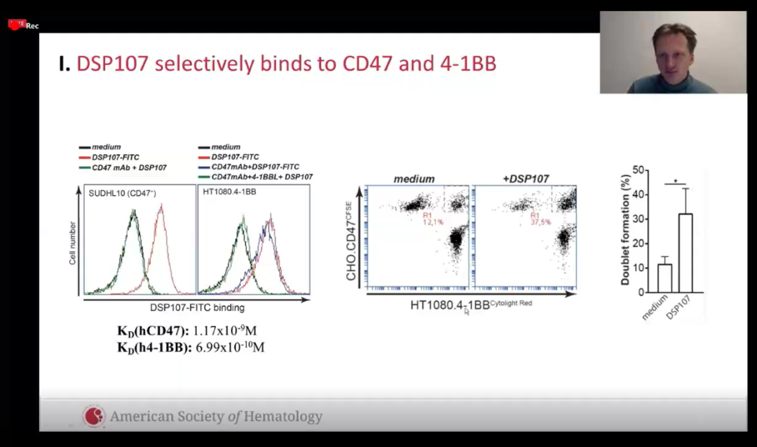 一、#173.一项关于DSP107,新型的双功能融合蛋白抑制剂,可抑制CD47和以及激活4-1BB,从而触发先天性和适应性的抗肿瘤免疫应答的研究
