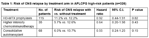 表2:仅自体干细胞移植巩固治疗可降低CNS复发风险、提升PFS和OS
