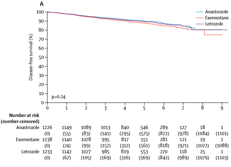 [5] Sabino De Placido, et al. Adjuvant anastrozole versus exemestane versus letrozole, upfront or after 2 years of tamoxifen, in endocrine-sensitive breast cancer (FATA-GIM3): a randomised, phase 3 trial. Lancet Oncol 2018; 19: 474–85.