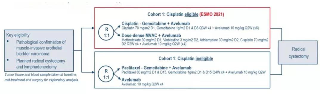以阿维鲁单抗(A)为基础的非转移性肌浸润性膀胱癌(NM-MIBC)适合和不适合铂类患者新辅助化疗(NAC)方案