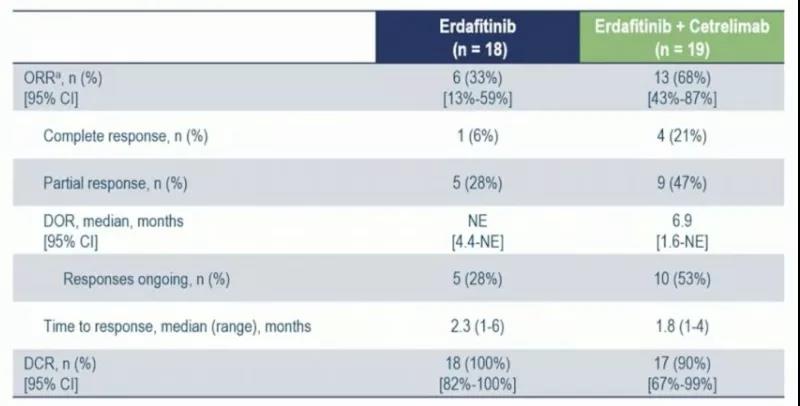 ERDA+CET在cis不耐受的FGFR突变mUC患者一线治疗中显示出有临床意义的治疗反应。安全性整体上与单独ERDA治疗一致。该研究仍在入组中。