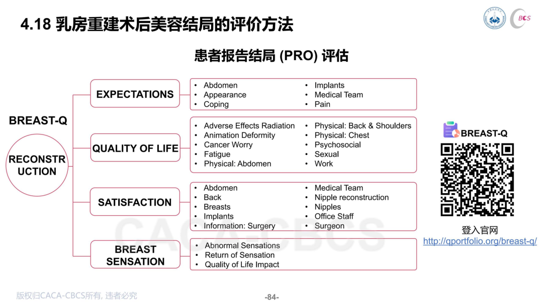为了进一步指导临床决策,以及为重建手术积累临床研究的资料,CBCS指南还加入了BREAST-Q等患者报告结局(PRO)评估,患者可以扫描二维码进行填表记录。