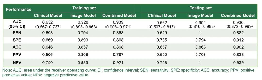 表2.预测模型在预测乳腺癌患者联合免疫疗法疗效方面的表现
