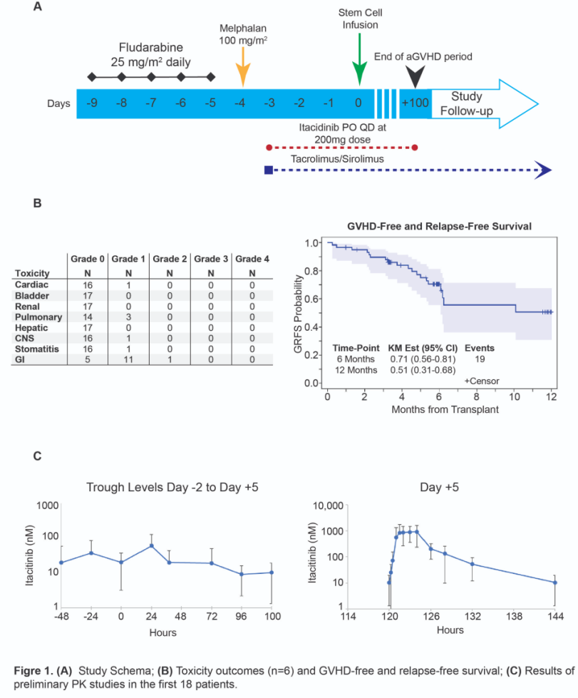 异基因HCT后Itacitinib+西罗莫司/他克莫司预防GVHD安全可耐受,疗效有前景
