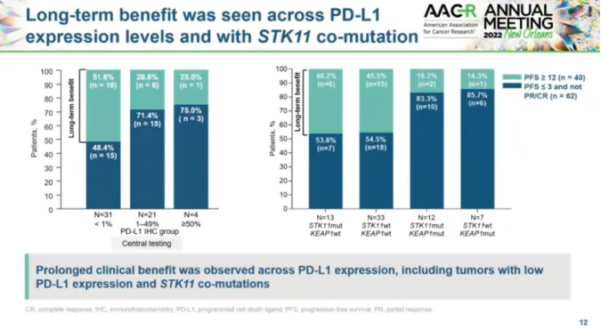 对肿瘤和血浆样本进行分析,以确定与持久临床获益相关的生物标志物谱。研究表明,无论基因突变频率(VAF)、PD-L1表达和STK11共突变状态如何,都可以观察到临床获益。