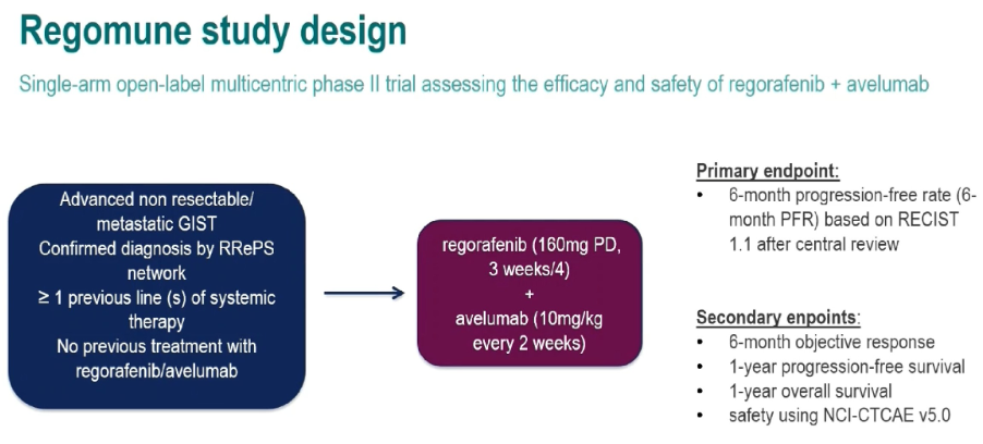 △II期Regomune研究:使用瑞戈非尼(多靶点TKI)联合阿维鲁单抗(抗PD-L1)治疗转移性胃肠道间质瘤