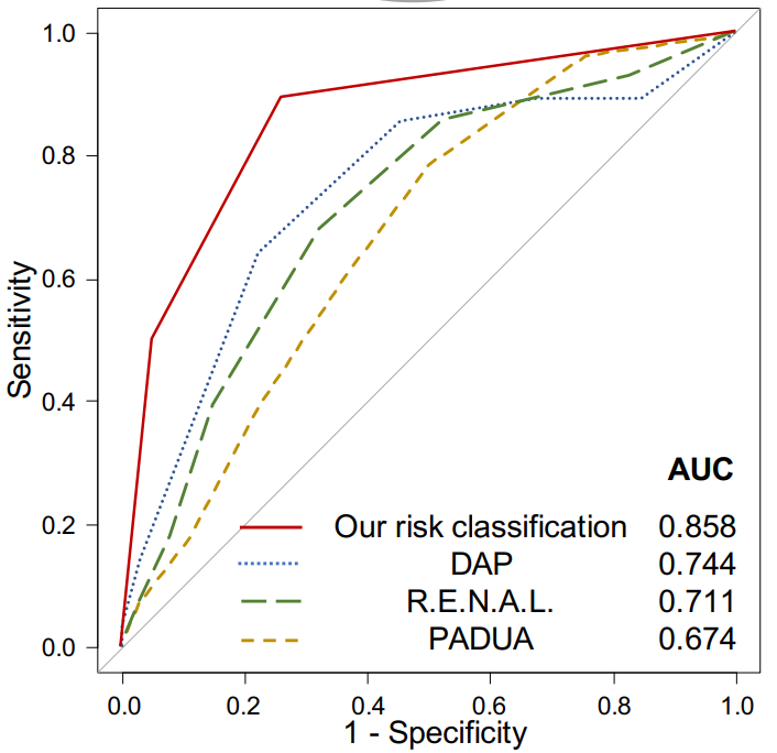 不同评分系统(I指数、DAP、R.E.N.A.L.和PADUA)的预测效能[6]