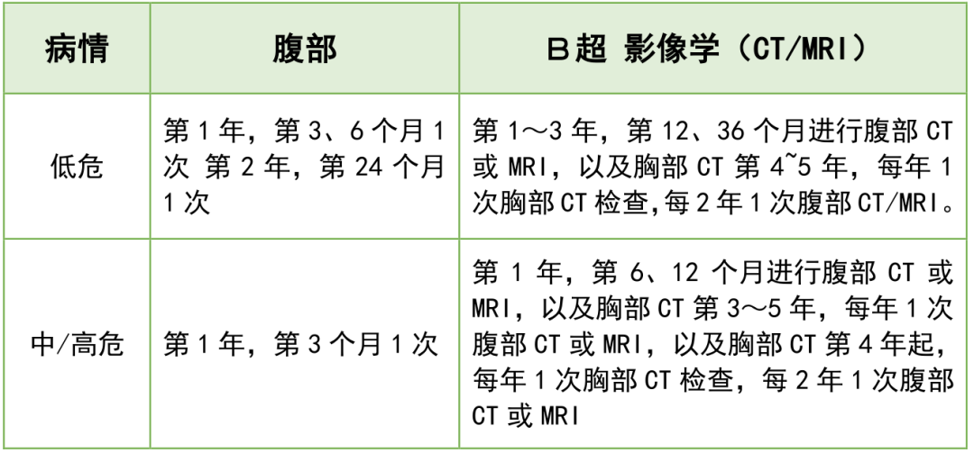 《中国泌尿男生殖系肿瘤手术后随访方案专家共识》随访分层及建议[7]